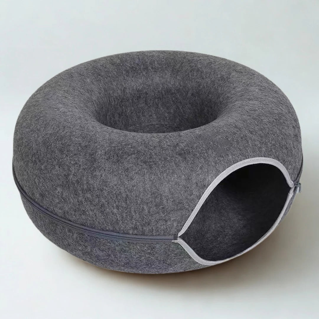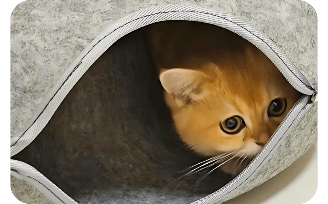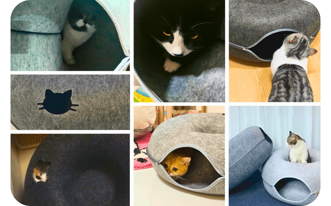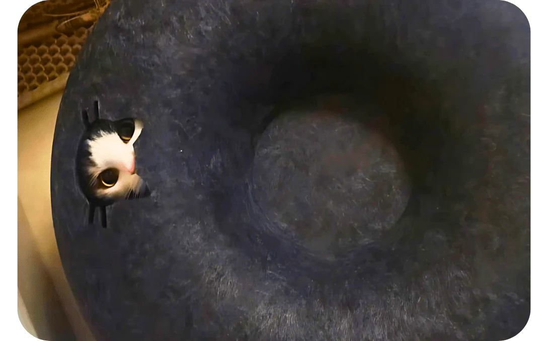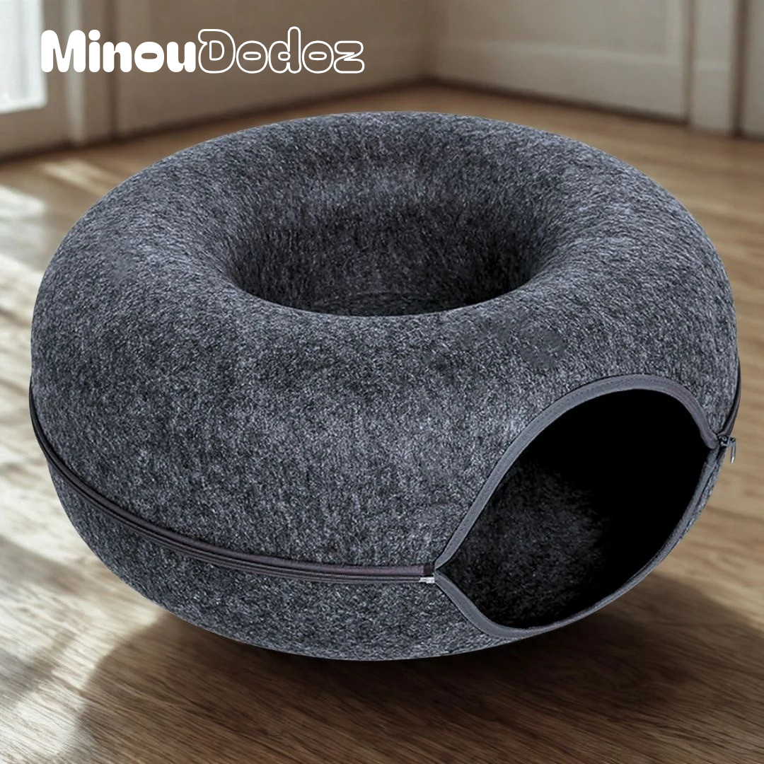 Minou Dodoz combine le confort d’un lit moelleux avec le plaisir d’un tunnel de jeu, créant un refuge douillet qui satisfait aussi la curiosité et le besoin d’activité de votre chat. C’est l’espace multifonction parfait pour dormir, se détendre et jouer.